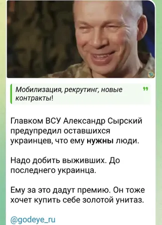 5. «Жители Полтавы ликвидировали троих сотрудников украинского ТЦК (аналог военкомата в РФ), напав на них из засады. В Полтаве ТЦК погнались за парнем в пригороде района Вакуленцы. Парень забежал в переулок, ТЦК — за ним, а там их ждало ещё несколько парней. В итоге трое ТЦКашников были убиты, ещё четверо сотрудников центра комплектования «остались инвалидами». + «Жители Николаева выманили из дома и убили сотрудника украинского ТЦК».